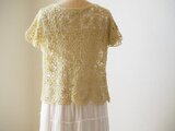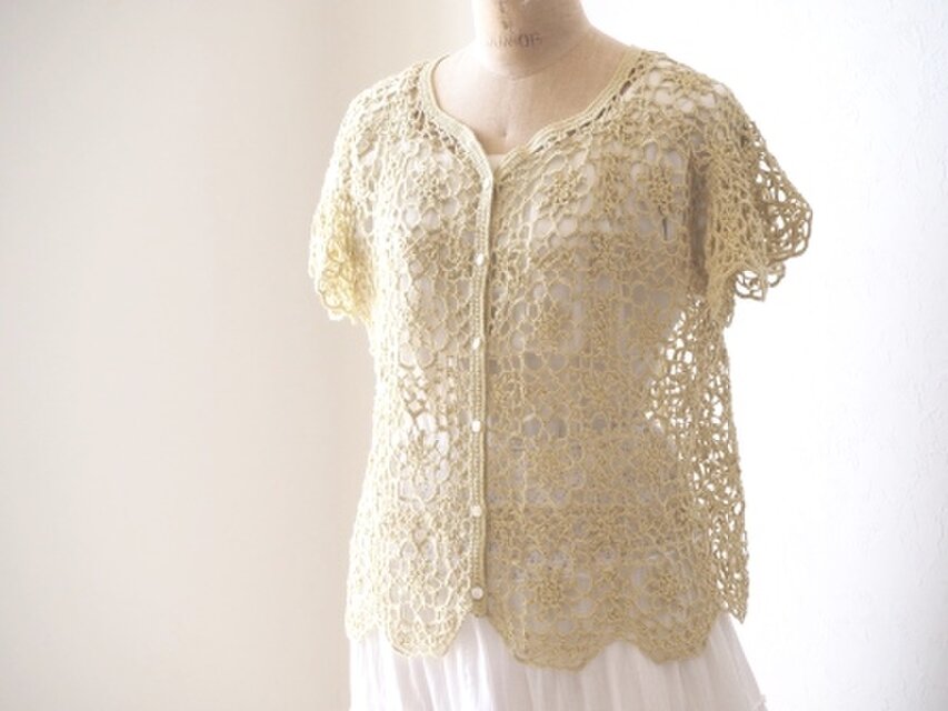 優しい色合いと繊細なデイジーモチーフの素敵な作品でした。 絶妙なデザインの袖が腕をほっそり見せてくれるのも素晴らしいです。手編みはやはりとても着心地がいいですね。