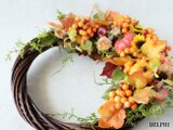 こちらのリースはオレンジ色の実が多いのでより秋に近づいています。