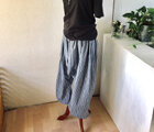サルエルパンツはあまりに着やすくて、私は一年中こればかり。スカートタイプに比べて、蚊に刺されにくいという利点もあります。