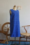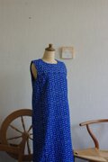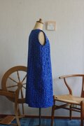 明るい藍色と水色の久留米絣でワンピースを作りました。