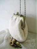 イタリア製のエンボス織インテリアファブリックのがま口バッグ