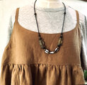 カフェオレカラーの薄手フレンチリネン100%で作ったキャミワンピです。