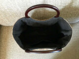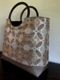 いつも素敵なバッグをありがとうございます。今回も大満足です。柿渋染めとバティックの渋い柄の取り合わせが絶妙です。丸い木の取手は持ちやすく、アクセントのボタンもいい感じ。華美さんのバッグはとてもセンスが良い上にこまかいところまで配慮が行き届いており、大変丁寧なお仕事です。またご縁がありましたらよろしくお願いします。