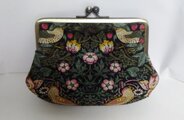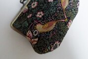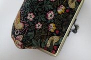 ウイリアムモリスの人気柄 いちご泥棒(ブラック)で作りましたがま口ふっくらポーチです