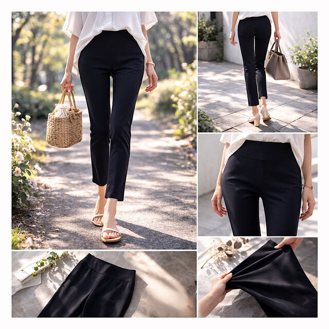 穿くだけで脚のラインがすっきり整う、大人女性のための美脚ストレッチパンツ。