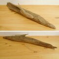 清流で採集した細長い流木は堅く重い上質なもの、穴ももともと開いていました。