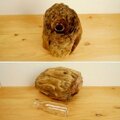 中央に穴を掘り内径1.2cm、長さ8.5cm の細めのガラス瓶を入れ花器に仕上げました。