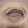 表地にコットン95%ポリウレタン5%のスパンフライスニット生地で作ったクロッシェ型の帽子です。