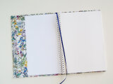 リバティの人気生地、ワイルドフラワーズ Wild Flowers(ホワイト)のラミネート生地(つや無)でB5サイズ(大学ノート)のノートカバーを作りました。