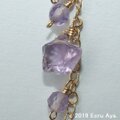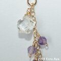 上からクリスタルのスターカット、アメジストのラウンドカット、アメジストのスターカットを下げ、ラウンドカットのアメジストを2個下げました。