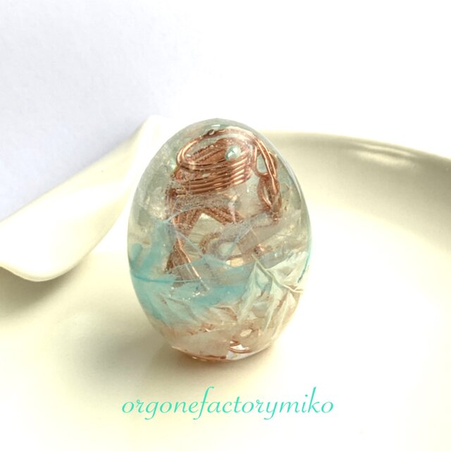 シャーベットブルー 羽 ツルツル卵 浄化と癒し ケオン 六芒星 幸運メモリーオイル入 オルゴナイト