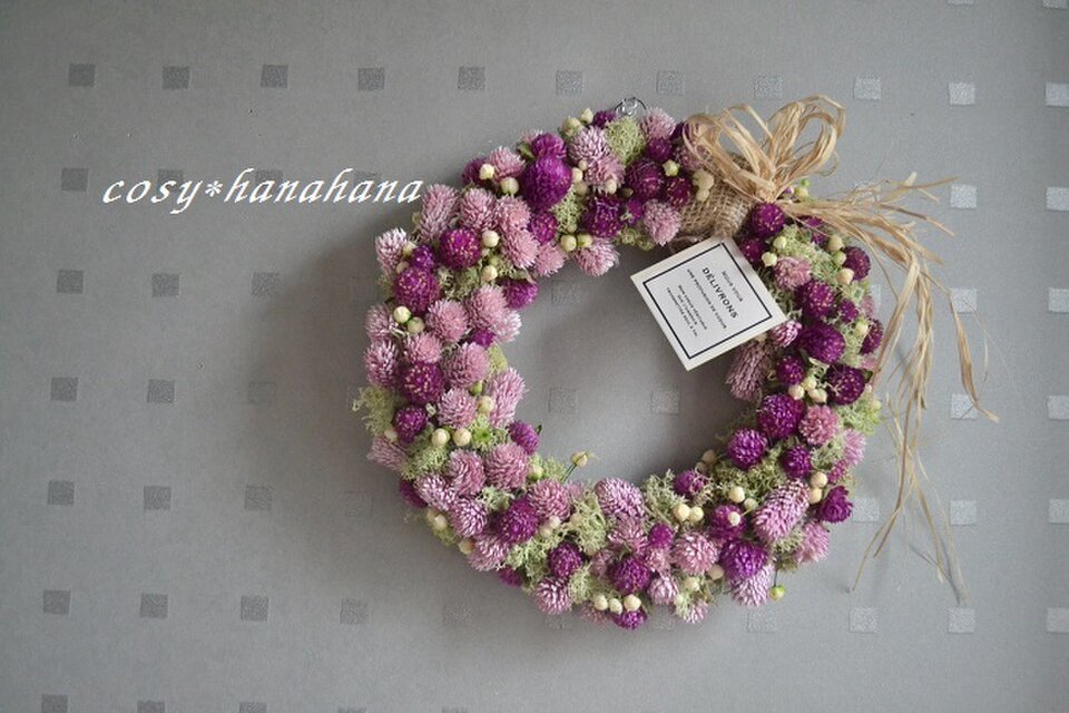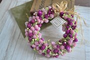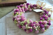 2色の千日紅をたっぷり敷き詰めたようなリース。