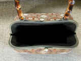 前回制作した七宝つなぎの袋帯 丸い木の手と同じ帯で、竹の手がま口手提げを作りました。