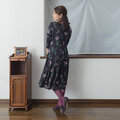 ・真夏と真冬以外に使えるスタンダートな厚みの生地です。花柄といえど、余白が多いデザインなので派手にならずに落ち着いた印象。写真のように、カラータイツとの相性もGOOD。フォーマルな場面はもちろん、Gジャンやカーディガン、パーカーなどを合わせてカジュアルに着ても上品に決まります。