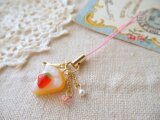 ガラスフュージングという技法で、丁寧に手作りいたしました、美味しそうなミニミニ・ショートケーキの、ストラップです。