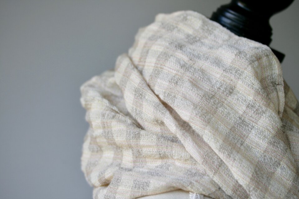 とても素敵なマフラーでした!薄くふわっと首にまけて、肌触りもよく、首周りも嵩張らないのでとてもスマートに着こなせます。色合いも顔が明るく見えて、きれいに映えました。 織り目もとても丁寧で綺麗です。 また気になる作品が出来た際にはぜひよろしくお願いします。たくさん愛用させていただきます。