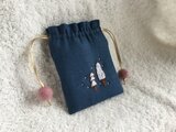 素材:刺繍糸・リネン布地・綿布地(裏地)・フェルトボール・サテンリボン・ビーズ