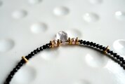 細い細いネックレスですので、チェーン感覚でおつけいただけます。ブラックスピネルもカットがほどこされていて、上品なキラキラ感があり、存在感があるかと思います。