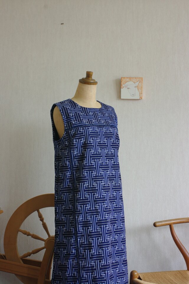 さらりとした薄地の絣に藍色の薄手のダブルガーゼ生地を重ねて仕立ててあります。