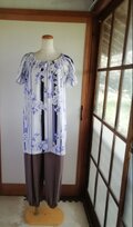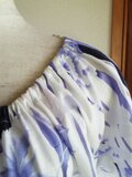 白地に紺色の花模様のマスク顔半分あごの下まで覆ってくれるタイプですが、薄手で柔らかく、しかしちゃんと立体で苦しくならず、夏にぴったりです。柄行もとても素敵でした。さっそく大活躍しております。