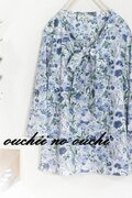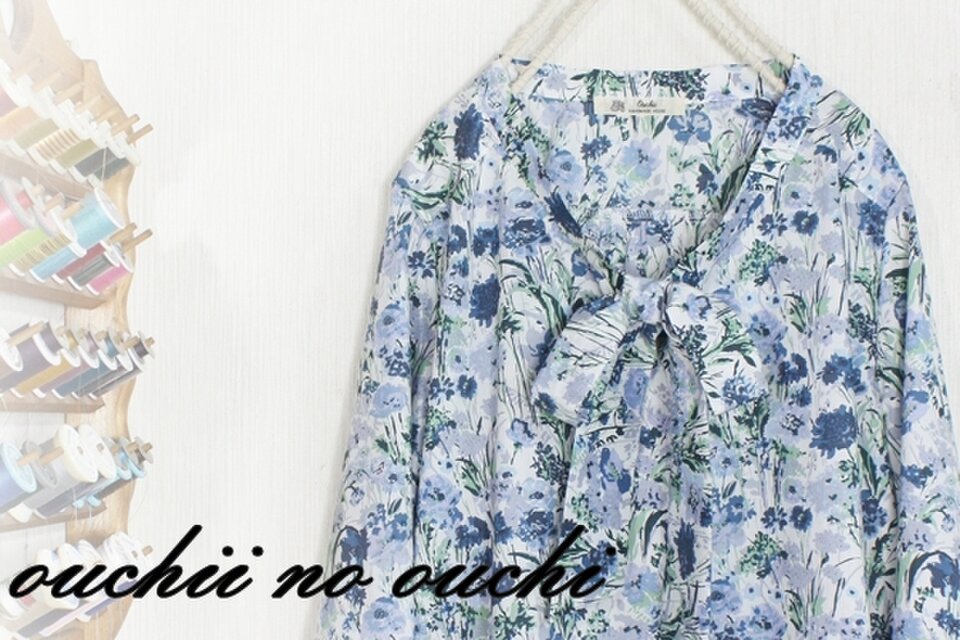 リバティ・タナローンで大人気柄 (ホビーラホビーレオリジナル)カレナ ブルー系でギャザーブラウスを作りました。