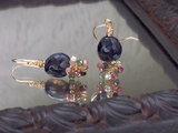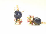 アイオライトと小さな天然石の耳飾り