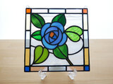 ステンドグラス ミニパネル ブルーローズ 15cm