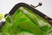 内布には、ライムグリーンのダイヤ模様のプリント生地を使用しています。