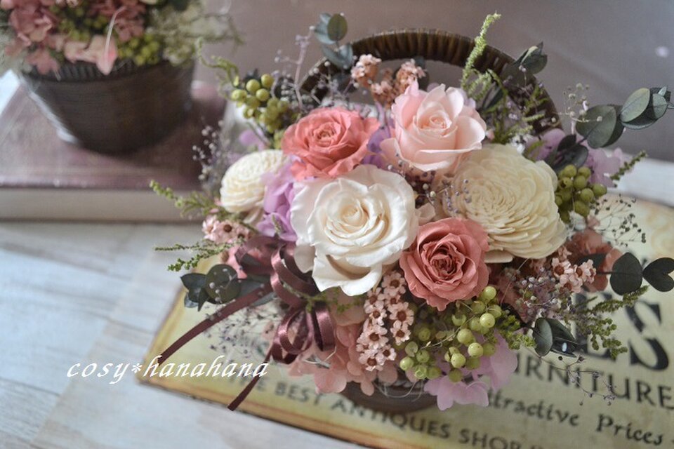 花材…ローズ3種 (プリザ)
