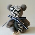 「総刺しこぎんクマ」は、こぎん刺しを生地全面に施した「総刺し」を使ったテディベア。
