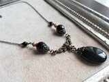 #天然石 #黒 #Yネックレス #アンティーク風 #レトロ #オニキス #秋色アクセサリー