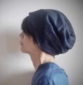 人気色のネイビーリバーシブルのターバンな帽子です。