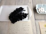 真っ黒、ほぼ一色。黒という特別な色だけに生地の光沢や質感が出る。花びらの素材そのものは柔らかく、花びらの葉脈のしわ加工がわかりやすく、シックでありつつボタニカル感もある。
