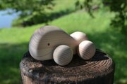 制作時間、約3時間。こんな木の玩具なら10分程度で仕上げて2000円程度の物を作るのが正攻法。それを知っていても、手作業で慎重に、丁寧に、何段階も磨き上げているのです。切りっ放しではなく、心を籠めた分だけ表面は優しくなり、木の温もりと合わさり、ママの手の温もりに近い、丸くて優しくてスベスベな木のオモチャになるのです
