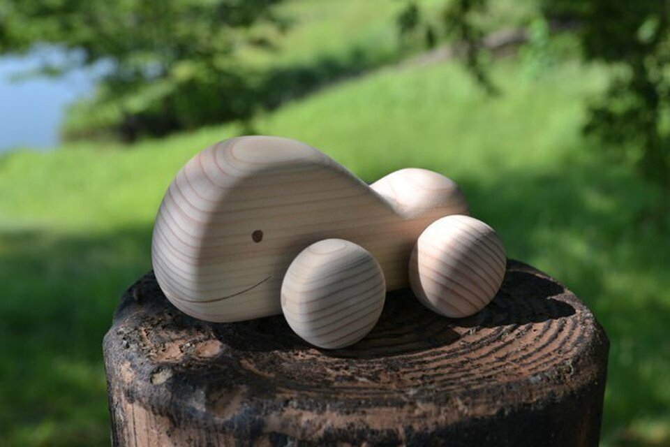 安全なのはオモチャとして当然です。それ以上のもの。人の温もりを届けたいと作っています。作家の手の温もりを、木のオモチャに移す事。それは機械で切りっ放しのものとは違い、時間の掛かる事なのです。近年・・・いや、過去においてもここまで入魂で作ったここまでの木のオモチャはそうは無いでしょう。僕達の作品は歴数十年の作家さんに見せても丁寧だねと驚かれるレベルです。