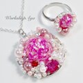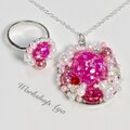 ピンクのプリンセスネックレスとリングのセット(レジン作品) です。