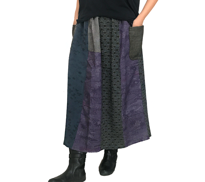 きものリメイクのロングスカート、パッチワーク、オールシーズン
