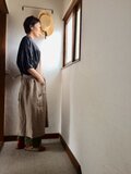 後ろあきのデザインですのゆったりしたパンツを合わせて