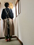 リネン100エプロンワンピースドレス カーキブラウン おうち服 母の日