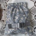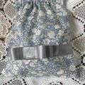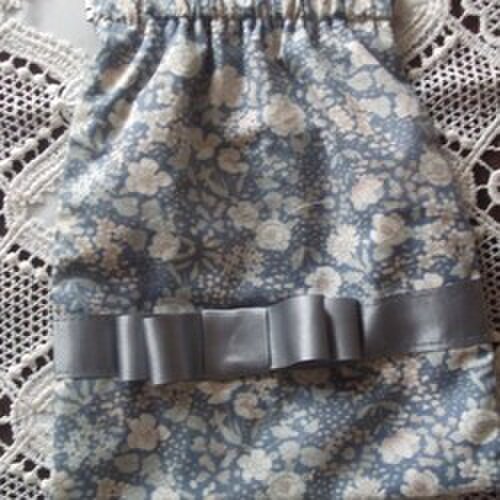 グレーのサテンリボンをあしらった小花柄の上品なバネ口ポーチです。