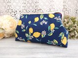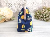 ◆【売り切れ】【再販3】レモンの大人女子清楚ながま口ポーチネイビー*フルーツイエロー旅行やプレゼントに◆