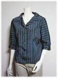 昭和初期の粋でモダンな縦縞着物から作ったブラウスです。