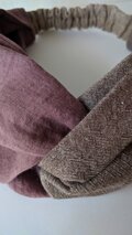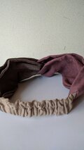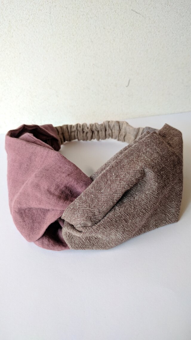 ブラウンとピンクボルドーの色使いが素敵なヘアバンドです。