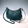 ★ハンドメイド★日本製★本革★斜め掛けショルダーバッグ★コロンとしたスタイル★三日月型★ブルーグリーン★スマホ★
