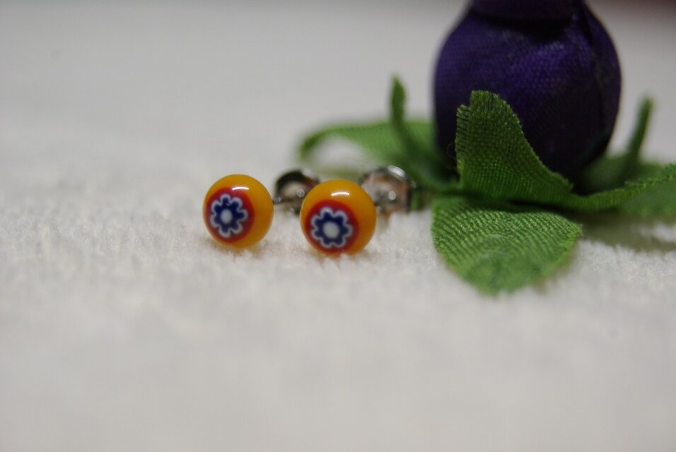 不透明のイエローのミルフィオリピアスです。