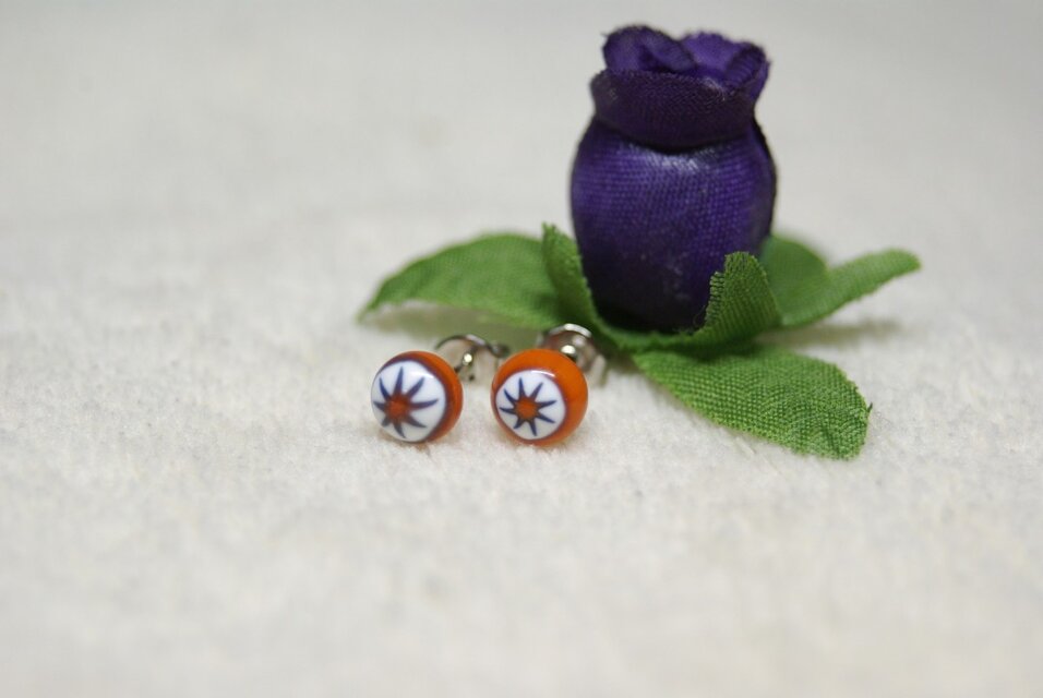 オレンジアスタリスクミルフィオリのガラスピアス
