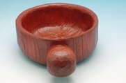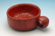 朱漆の3回拭きです。塗膜は薄めで木の地が見えます。