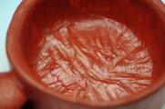木地をヤスリで均していないので不規則なノミ跡があり、とくに内側の底にはノミ跡の波を残してあります。