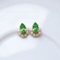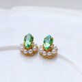 8mmの透かしプレートに8mm×4mmのペリドットと、まわりに2mmの白い樹脂パールを飾った小さなビジューゴールドピアスまたはイヤリングです。