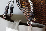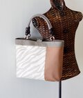 入荷したばかりのベージュのゼブラ柄と、アメリカで購入したエスニック調の持ち手で大きめのトートバッグを作りました。